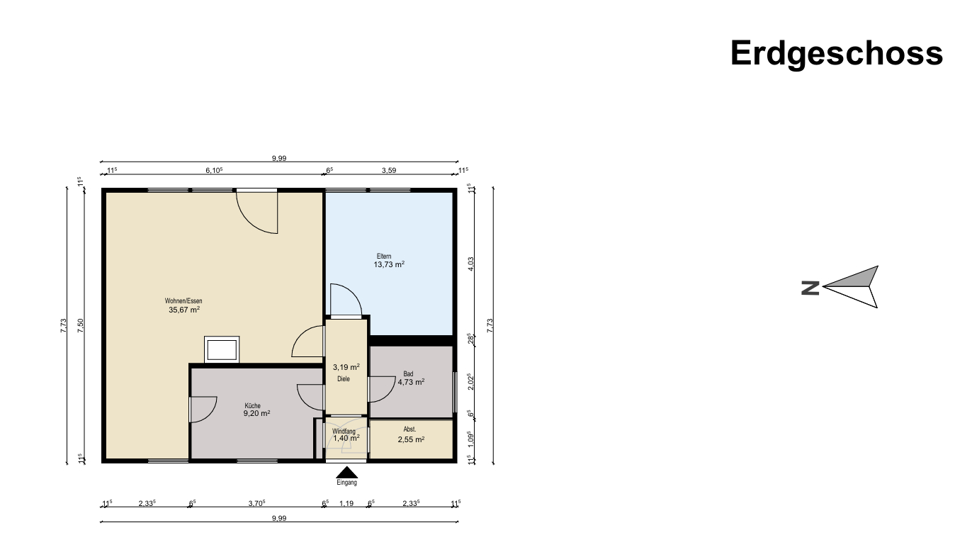 Im Erdgeschoss verfügt das Haus über zwei Zimmer, eine Küche, einen Abstellraum sowie ein Tageslichtbad mit Dusche. Rollläden an allen Fenstern sind vorhanden.
