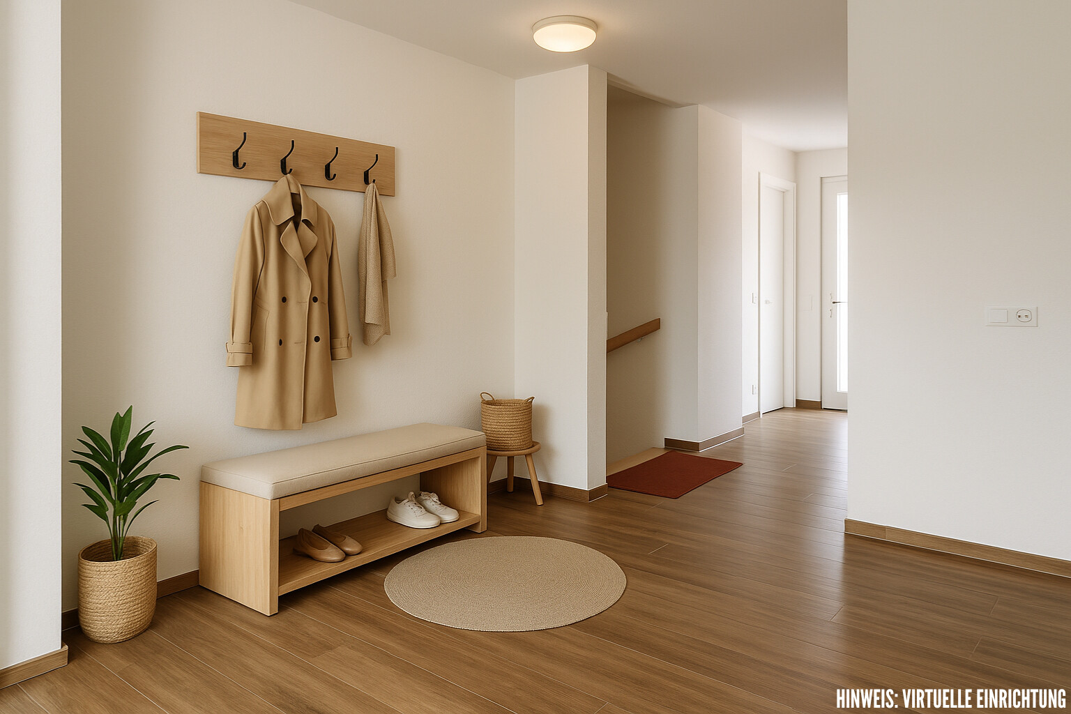 Die Fußbodenheizung, die mit einer Luft-Wärme-Pumpe betrieben wird, sorgt im gesamten Haus für behagliche Wärme.