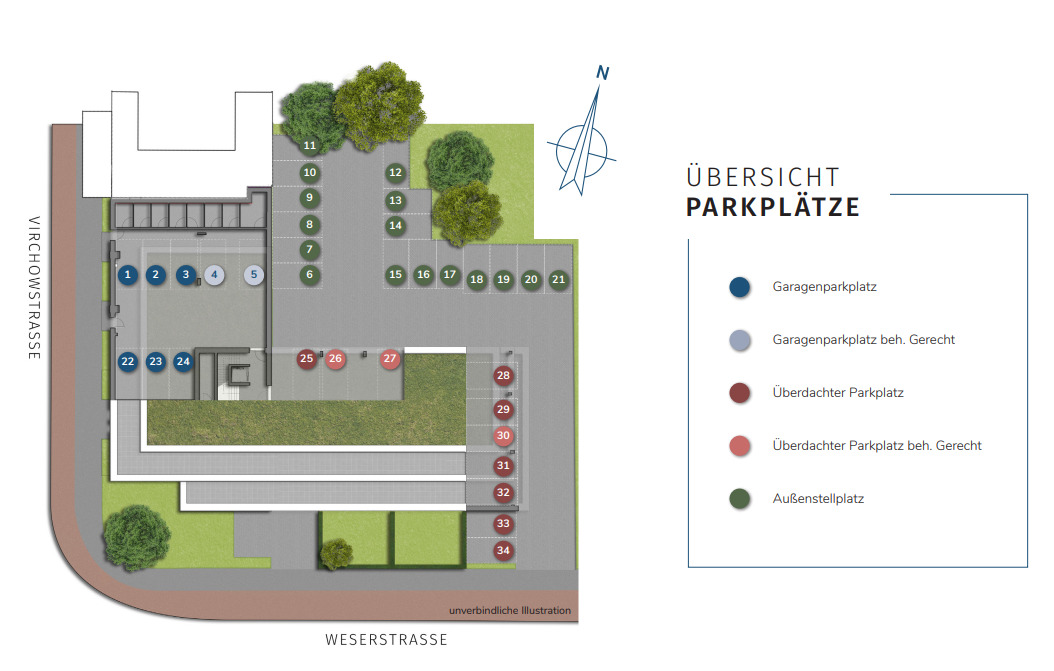Die Parkplätze können unabhängig von den Wohnungen gekauft werden. Sie sind den Wohnungen nicht fest zugeordnet.