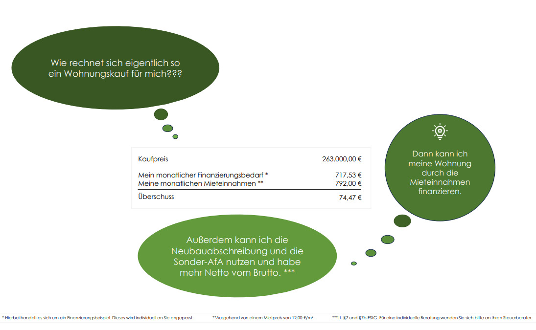 Am Ende der Bilder finden Sie ein Beispiel, das zeigt, wie sich der Kauf der Wohnung rechnen könnte.