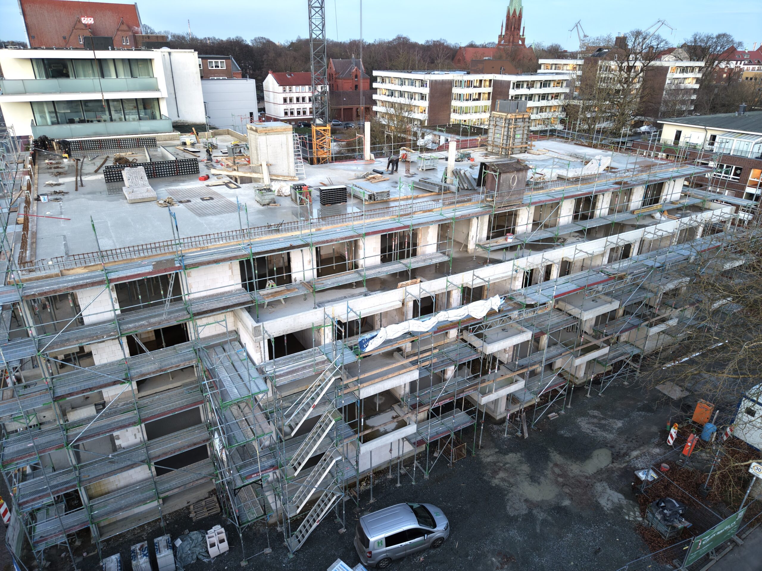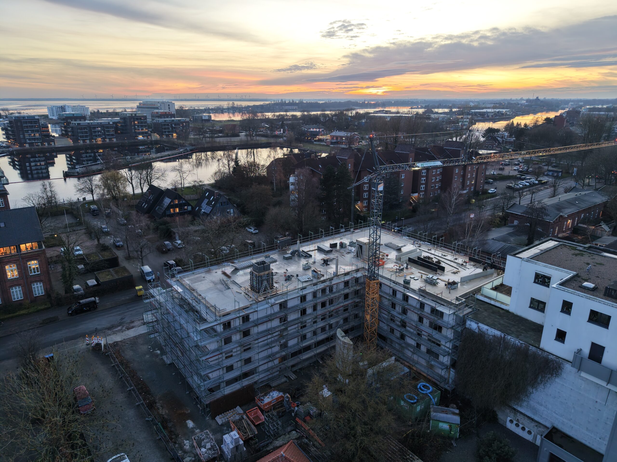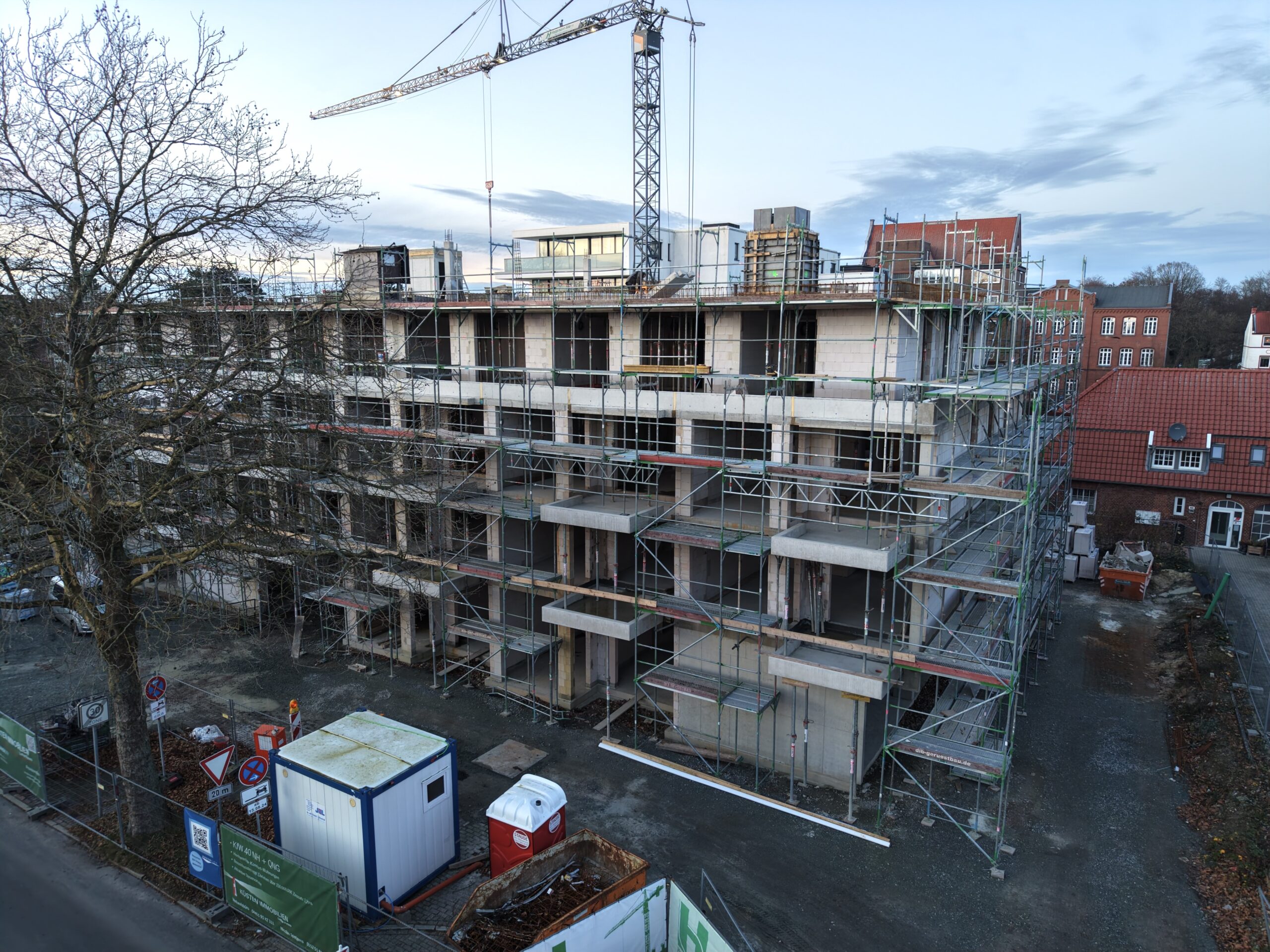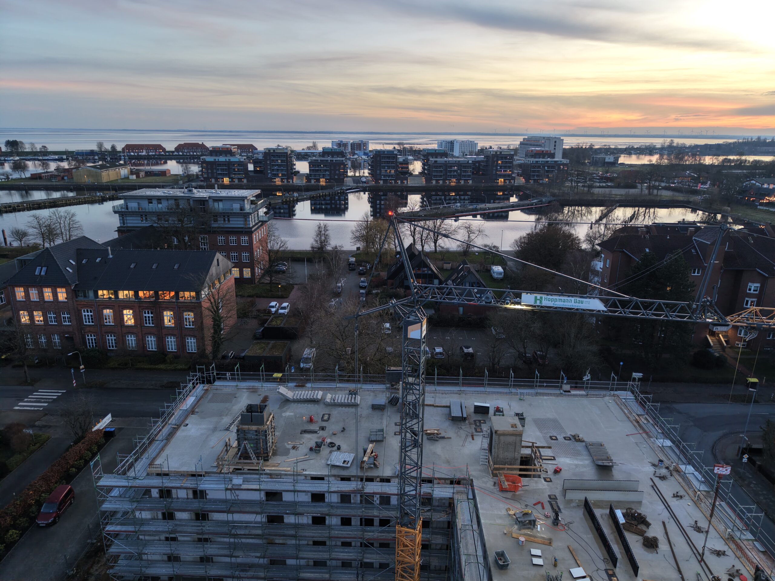 Das neue Projekt Havencity in Wilhelmshaven nimmt weiter Gestalt an! Der moderne Neubau wächst stetig – aktuell befindet sich der Rohbau bereits im 2. Obergeschoss. Schritt für Schritt entsteht hier ein attraktives Wohnensemble in maritimer Lage, das modernes Wohnen mit Hafenflair verbindet. Bleiben Sie gespannt – wir halten Sie hier regelmäßig über den weiteren Baufortschritt auf dem Laufenden! Gekauft werden kann schon jetzt – Zahlung erst bei Fertigstellung. Sprechen Sie uns gerne an.