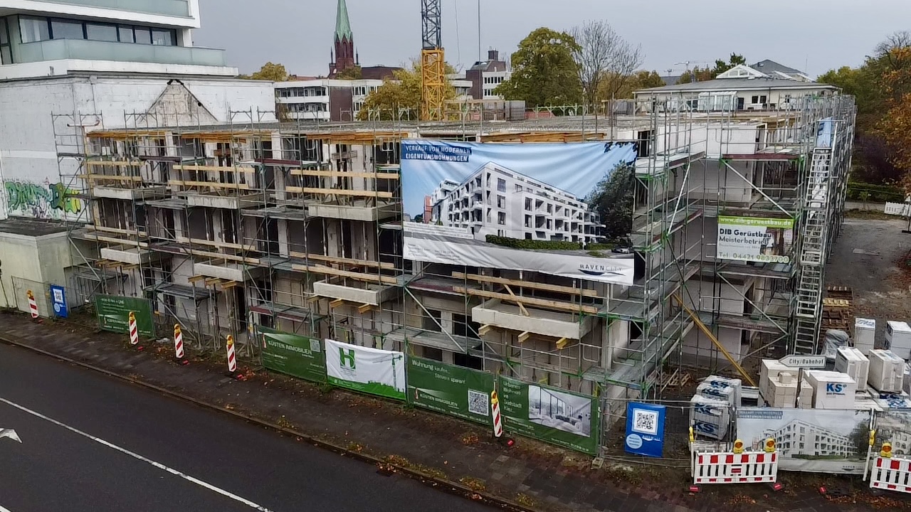 Der moderne Neubau wächst stetig – aktuell befindet sich der Rohbau bereits im 2. Obergeschoss. Schritt für Schritt entsteht hier ein attraktives Wohnensemble in maritimer Lage, das modernes Wohnen mit Hafenflair verbindet.