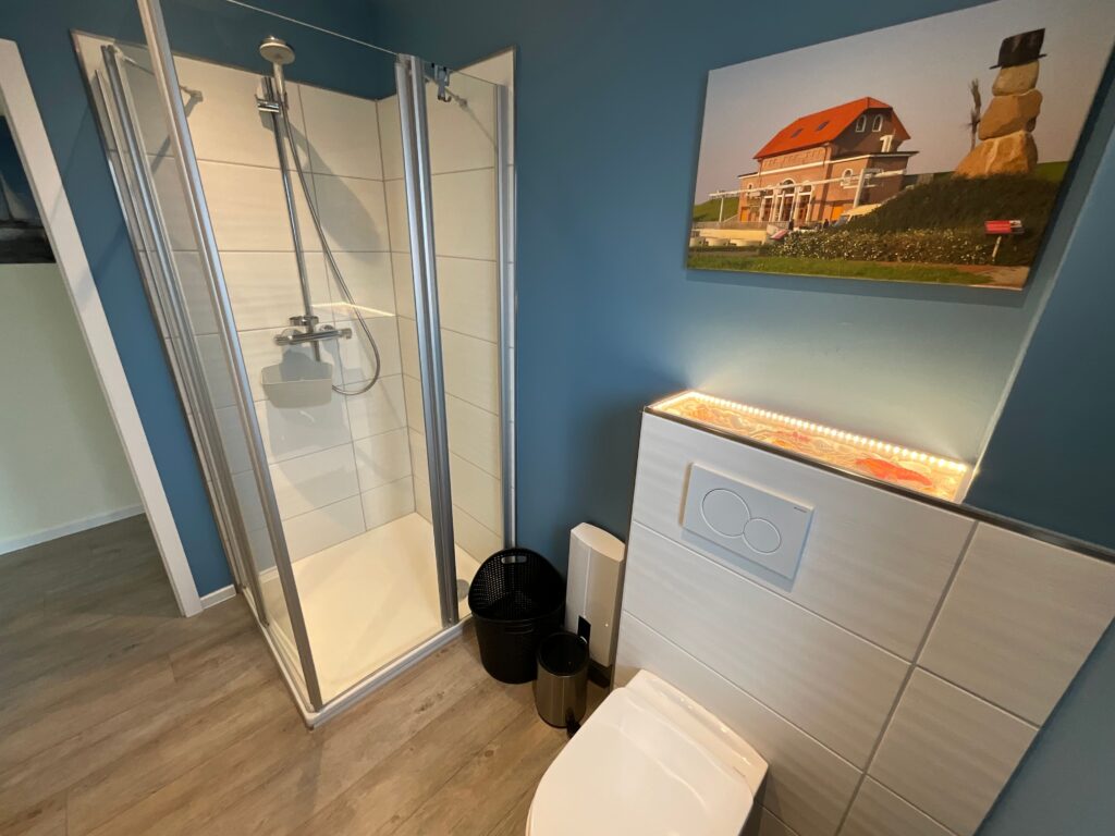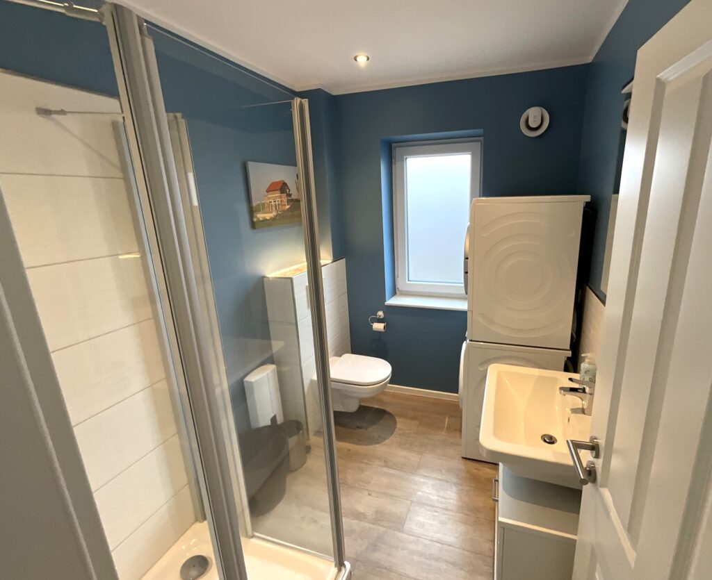 Bad 1: befindet sich im Erdgeschoss mit Dusche, WC und Waschbecken, Waschmaschine und Trockner