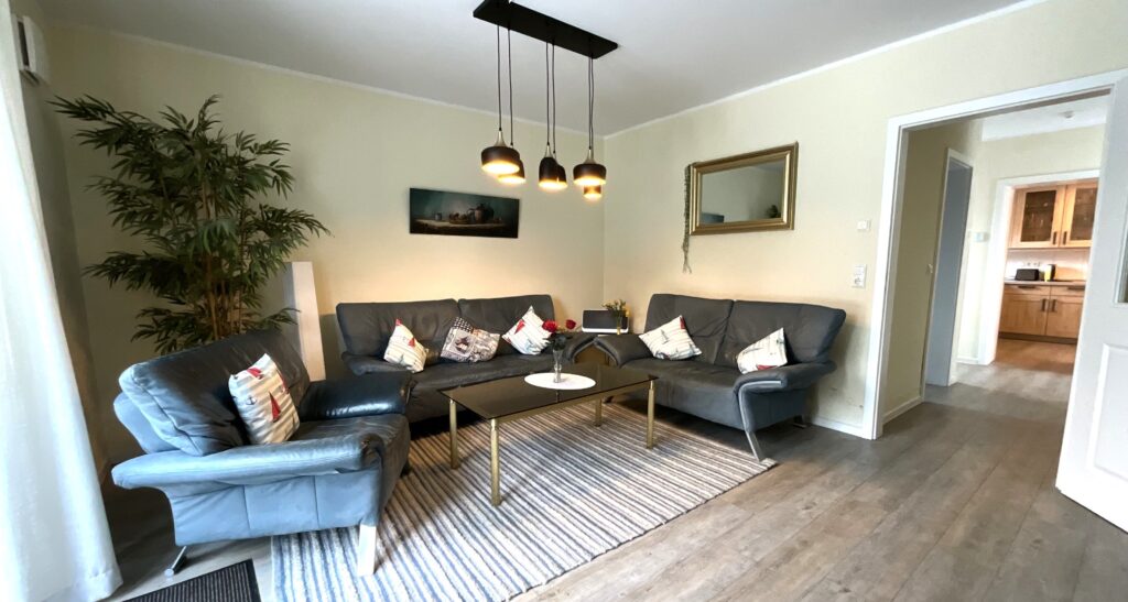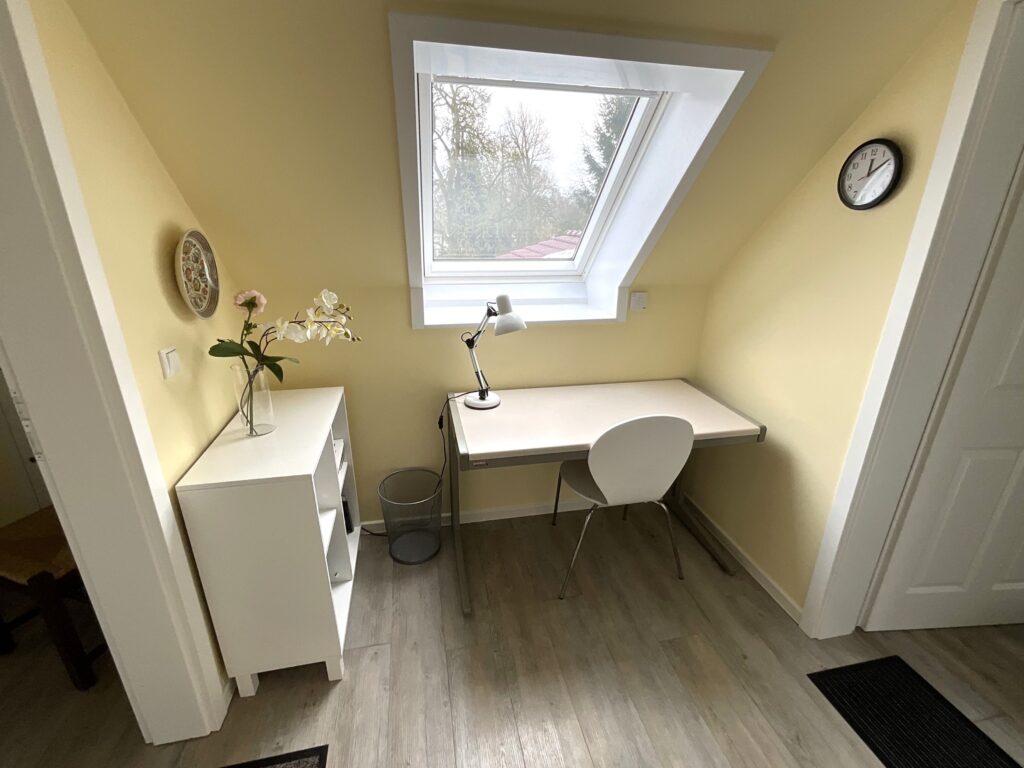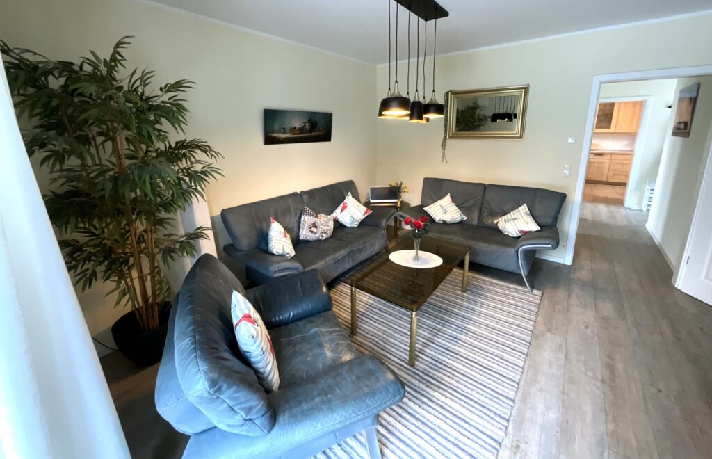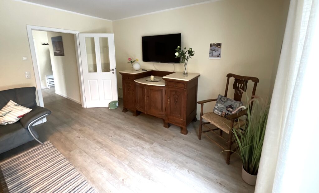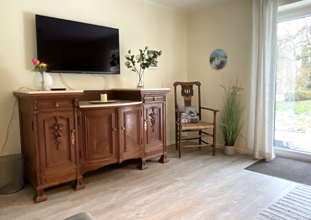 Im Haus erwarten Sie ein einladender Wohnbereich mit Sofaecke, Sessel und TV (digitaler Anschluss), ergänzt durch Radio, Bücher sowie WLAN/Internet für Ihre Unterhaltung und Verbindung nach außen. Ein Schreibtisch bietet zudem eine praktische Möglichkeit zum Arbeiten oder Planen Ihrer Ausflüge.