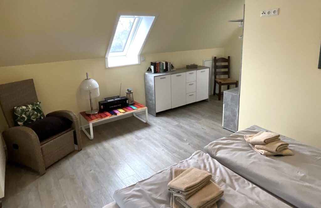 Zusätzliche Kinderausstattung vorhanden: 2 x Kinderreisebett (faltbar) + 2 x Kinderhochstuhl,