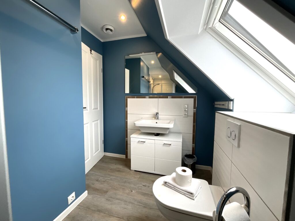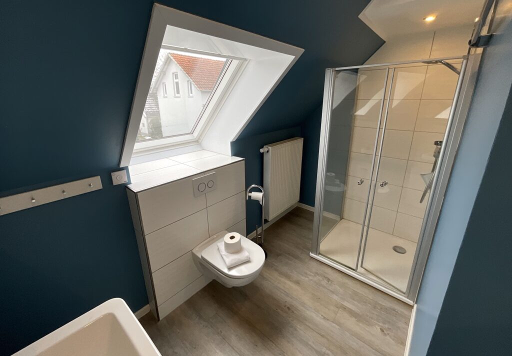 Bad 3 (1. Etage) : Dusche, Waschtischanlage mit Spiegel, WC, Handtücher auf Anfrage