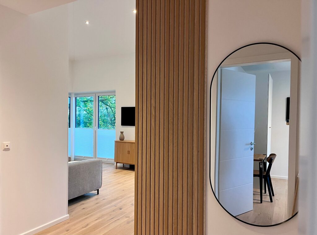 Die Ferienwohnung "Flutlicht" befindet sich im Obergeschoss eines modernen Gebäudes im malerischen Ferienort Dangast, nur etwa 900 Meter vom Sandstrand der Nordsee entfernt. Die Wohnung verbindet zeitgemäßen Wohnkomfort mit einer ansprechenden, familienfreundlichen Ausstattung. Die Lage im ländliche...Weiterlesenn Dorfumfeld garantiert Ruhe, während Einkaufsmöglichkeiten, Restaurants und der öffentliche Nahverkehr fußläufig erreichbar sind.